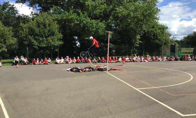 As if cycling around Swavesey wasn’t tiring enough, on Wednesday, Mike Mullen, a previous ‘Half-pipe’ WORLD CHAMPION BMX rider returned once again, for a BMX workshop.